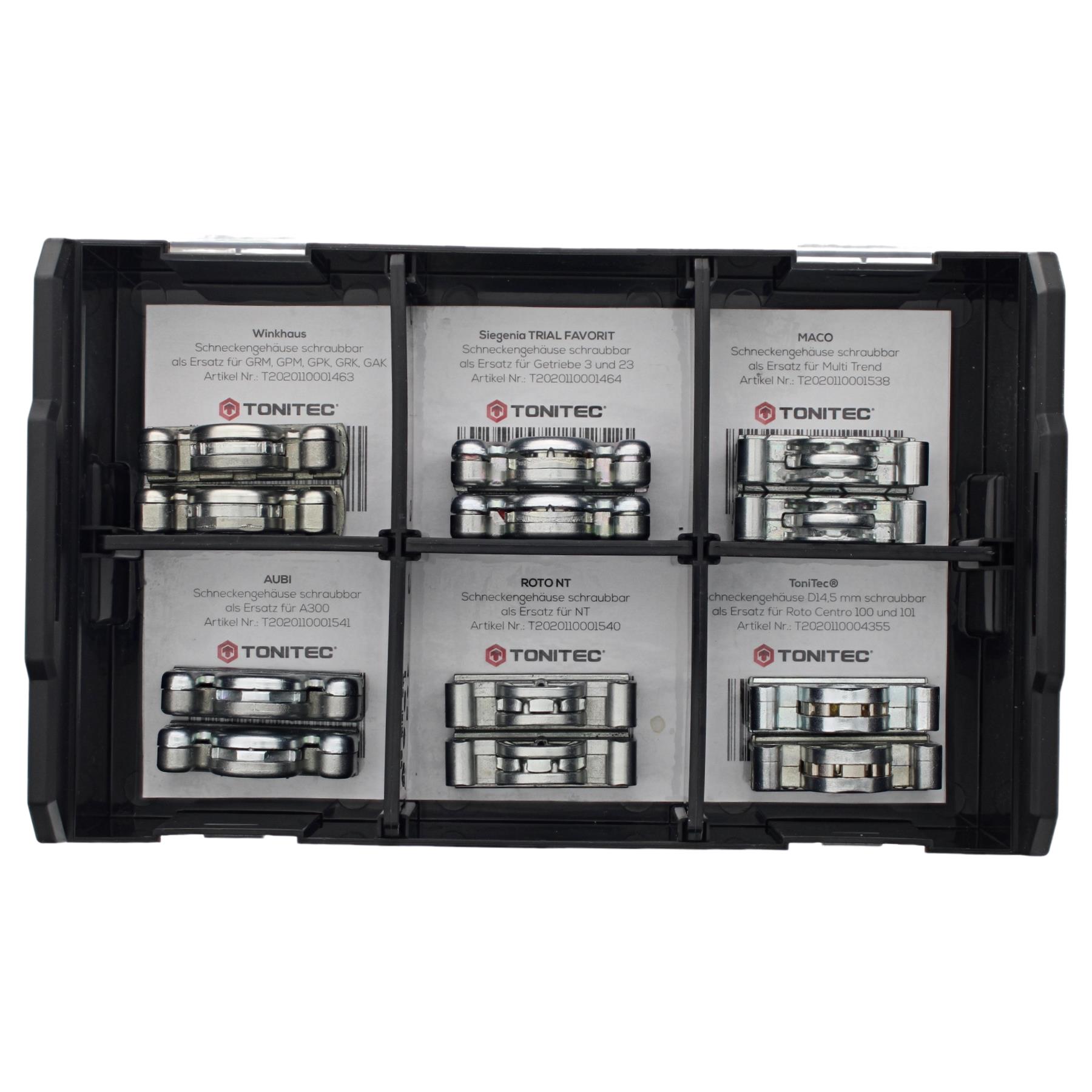 ToniTec Schneckengehäuse Erstausstattung BOX je 2 Stück Siegenia, Winkhaus, AUBI , MACO, Roto und FEPS (Ersatz für Roto Centro) 5720981