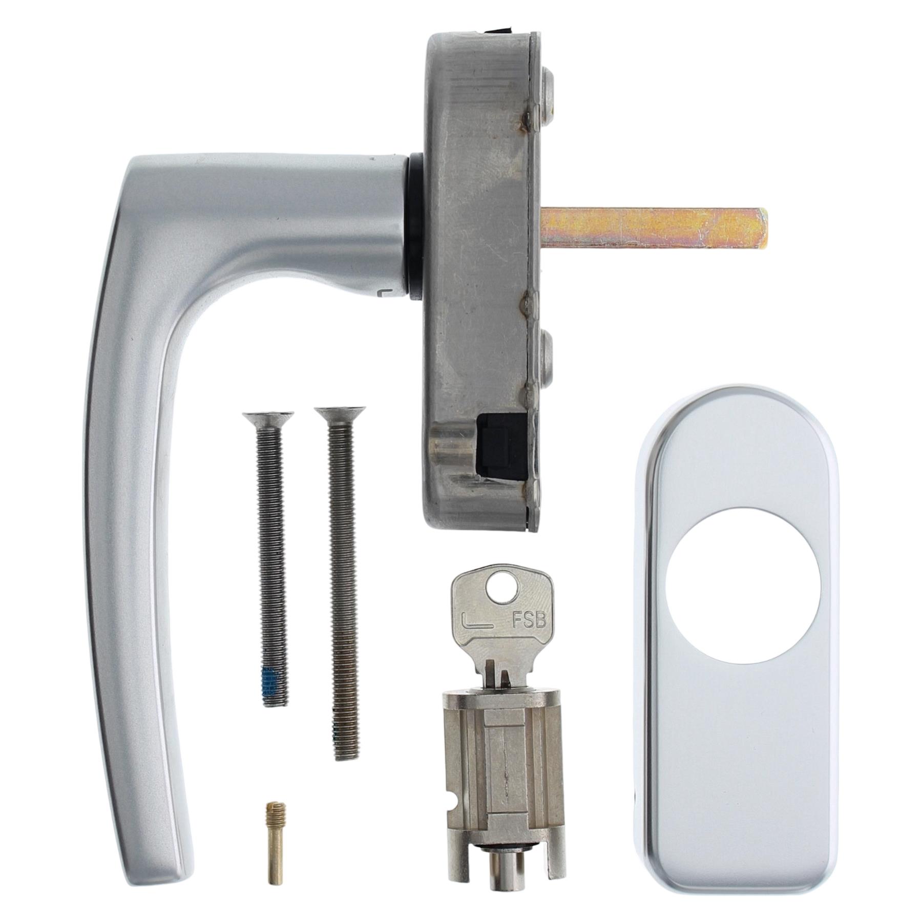 - 1x FSB Fenstergriff abschließbar, Modell 34 1015, Griffstift 38 mm, F1-Oberfläche