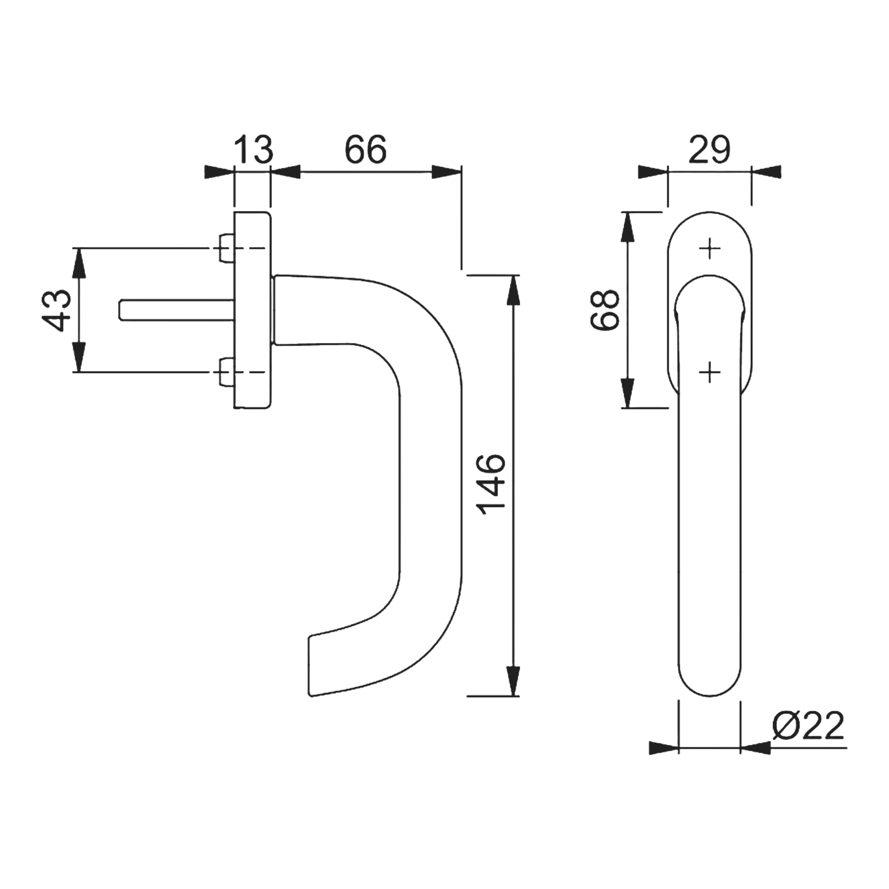 Der Griff passt zu Fenstern mit einem Vierkantstift von 7 mm und einem Lochabstand von 43 mm. Bitte prüfen Sie die Maße am vorhandenen Fenster.