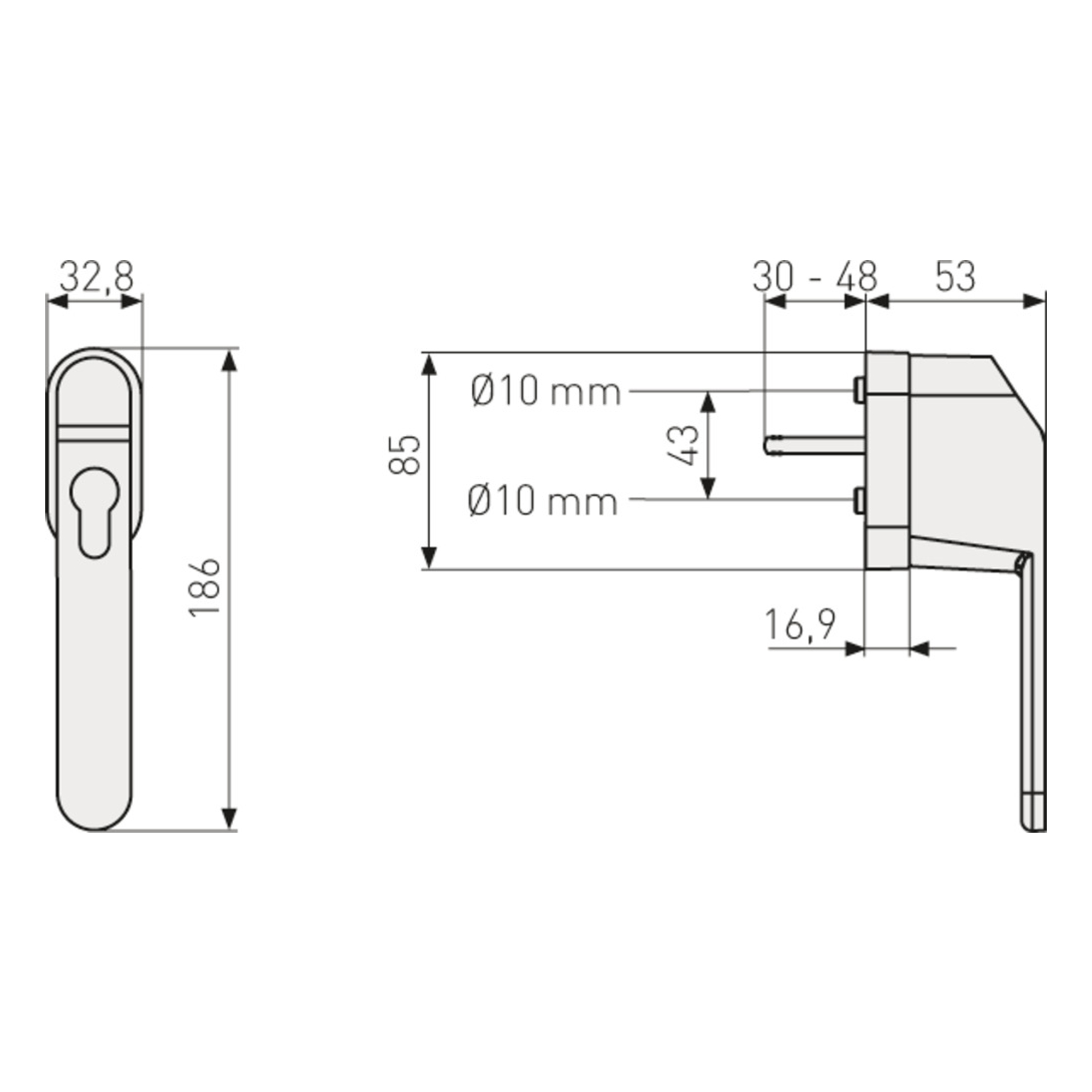 Der Griff ist für handelsübliche Halbzylinder nach DIN-Norm ausgelegt. Die genaue Kompatibilität kann je nach Zylindermodell variieren.