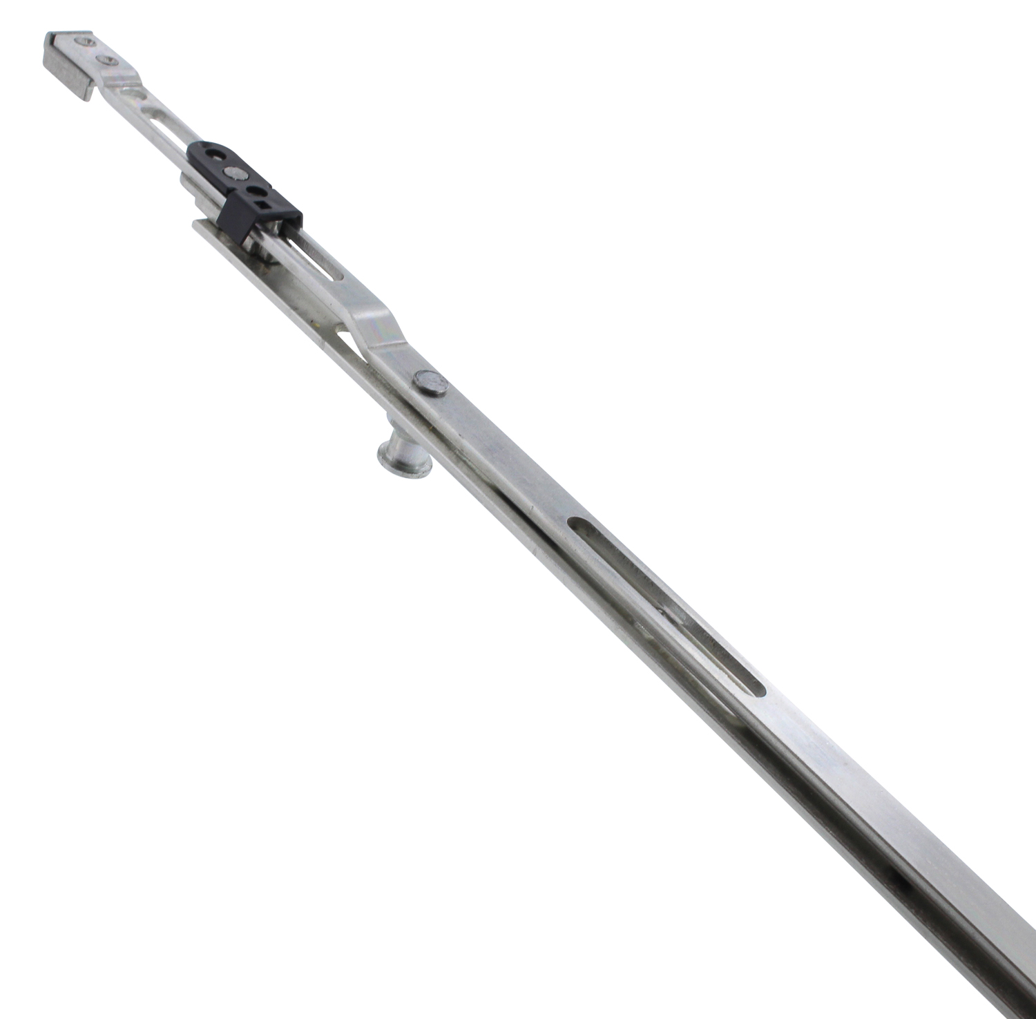 Der Maco Mittelverschluss 1500V RAL9006 ist ein verlängerbarer Fensterbeschlag, der speziell für Bodenschwellen entwickelt wurde. Er dient zur sicheren Verriegelung von Fenstern und sorgt für eine zuverlässige Schließfunktion im Flügelbereich.