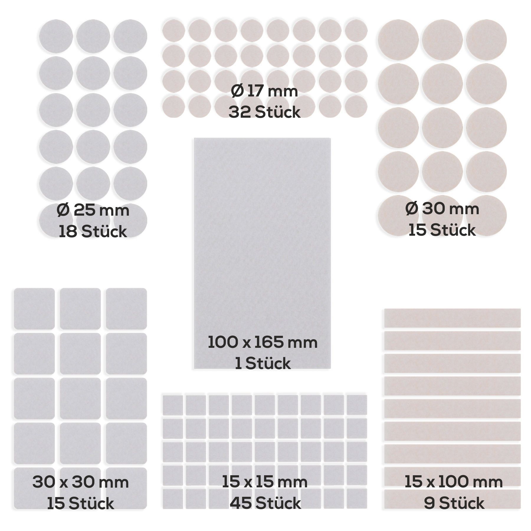 - Material: abriebfester Filz mit starker Klebefläche