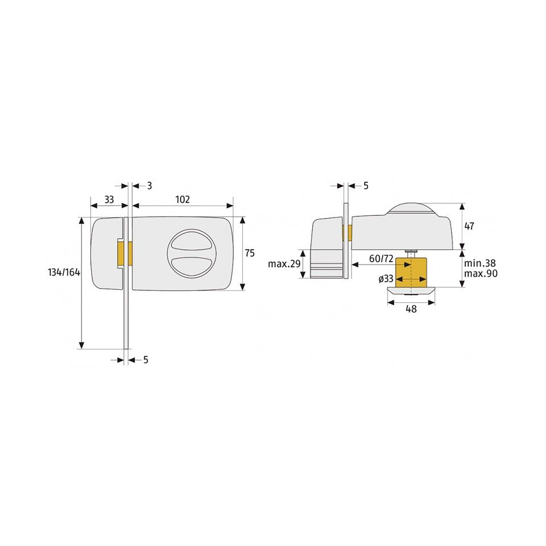 - Effektiver Schutz gegen Aufhebeln der Tür an der Schließseite, Druckwiderstand von über 1 Tonne