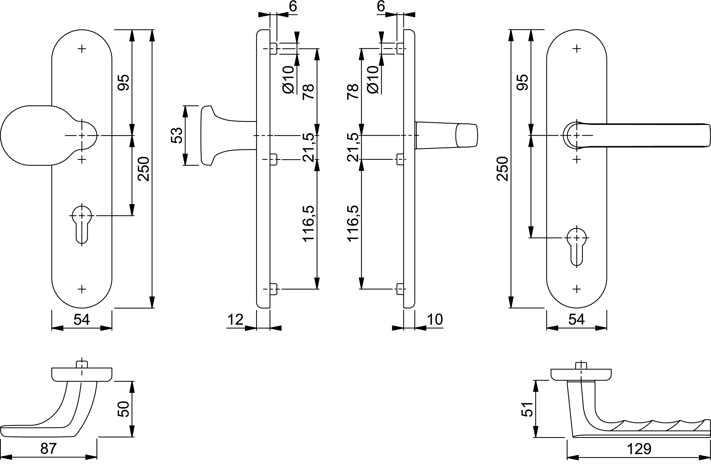 Die Garnitur ist für Standard-Profilzylinder ausgelegt.