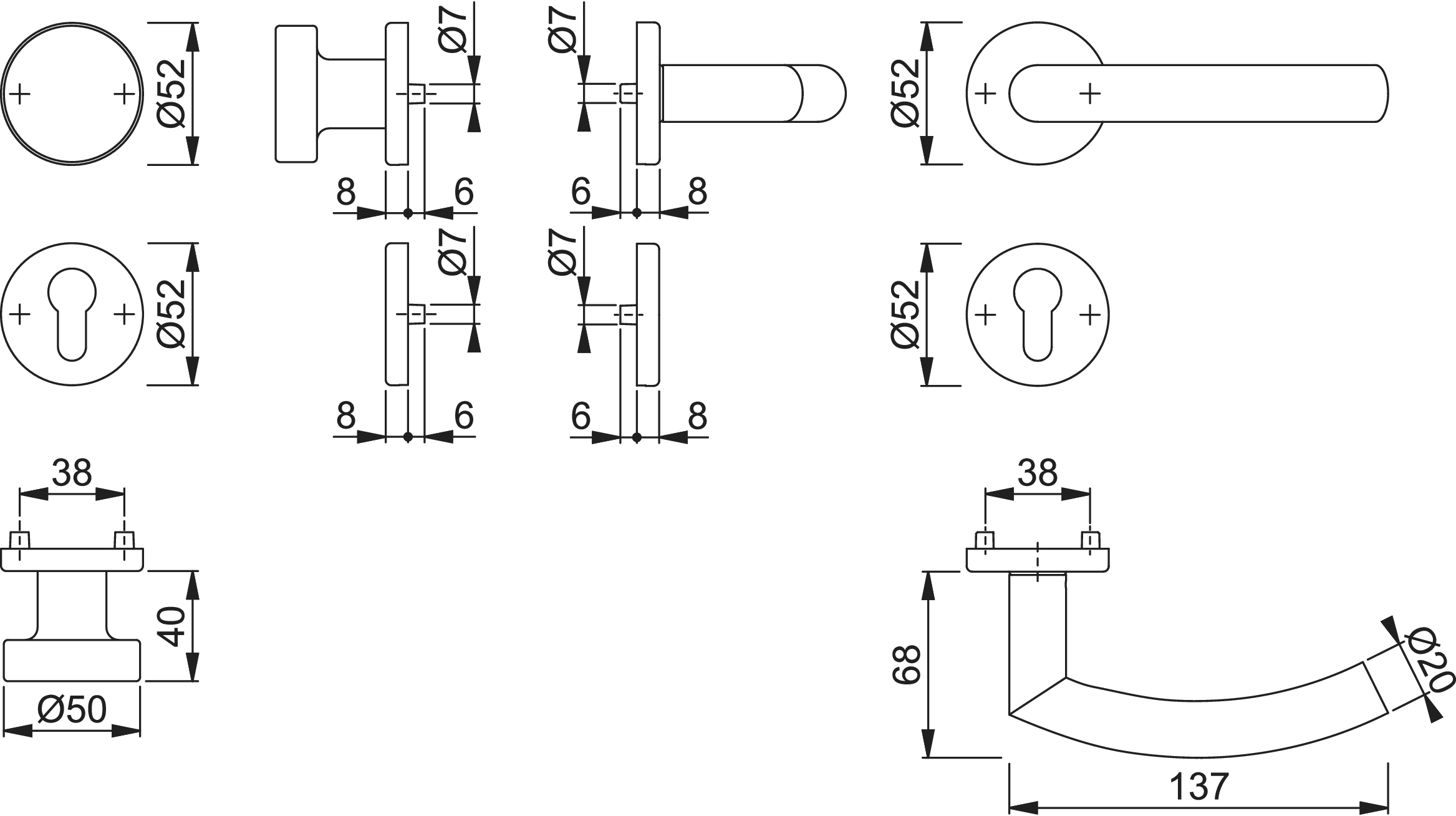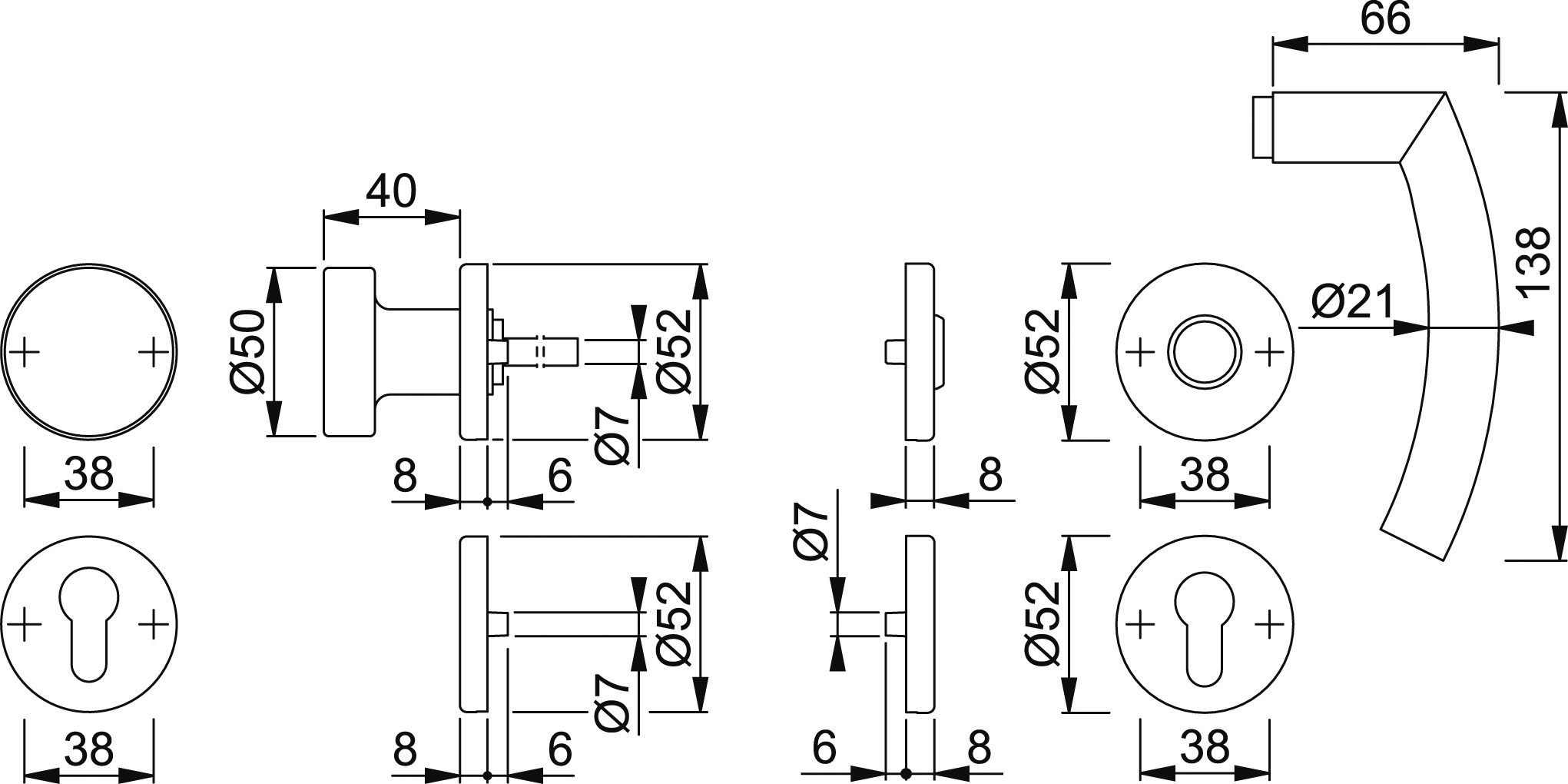 Die Garnitur ist für gängige Türstärken ausgelegt; bei abweichenden Maßen bitte Angaben des Herstellers beachten.