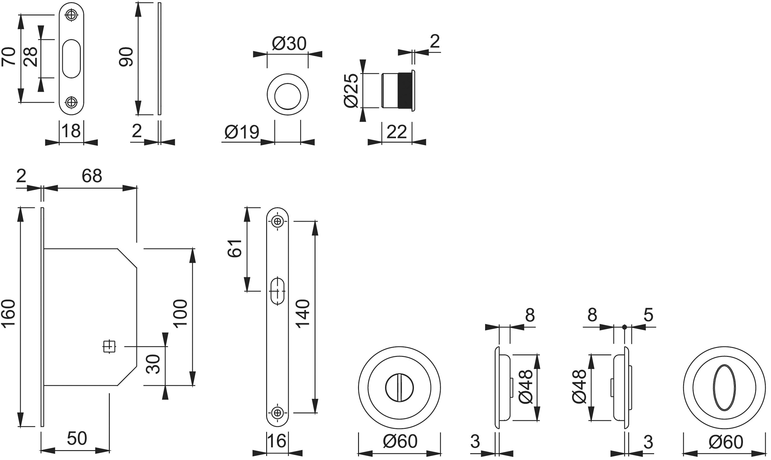 - Bauart: Schiebetürmuschel-Set mit Schloss und Griffmuschel
