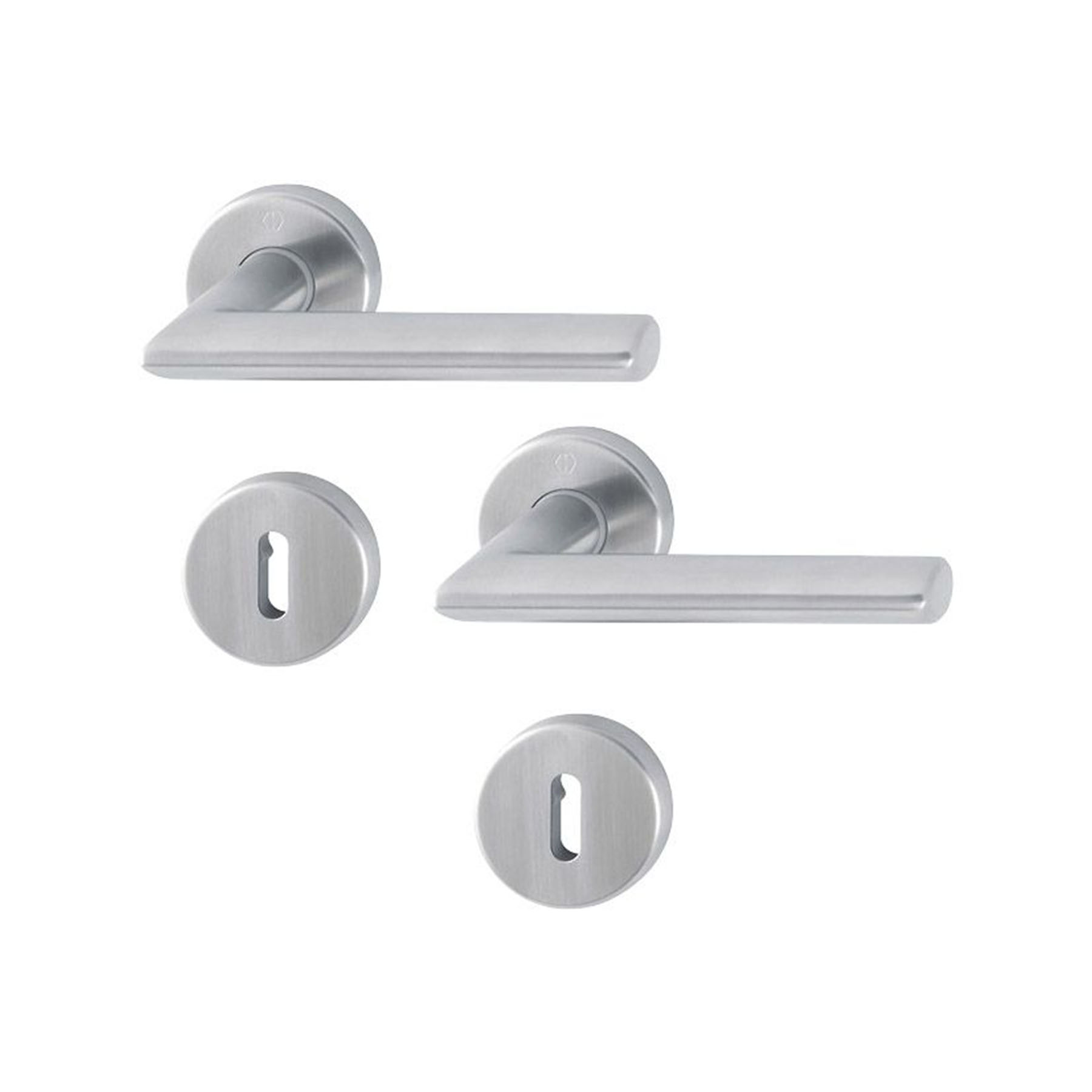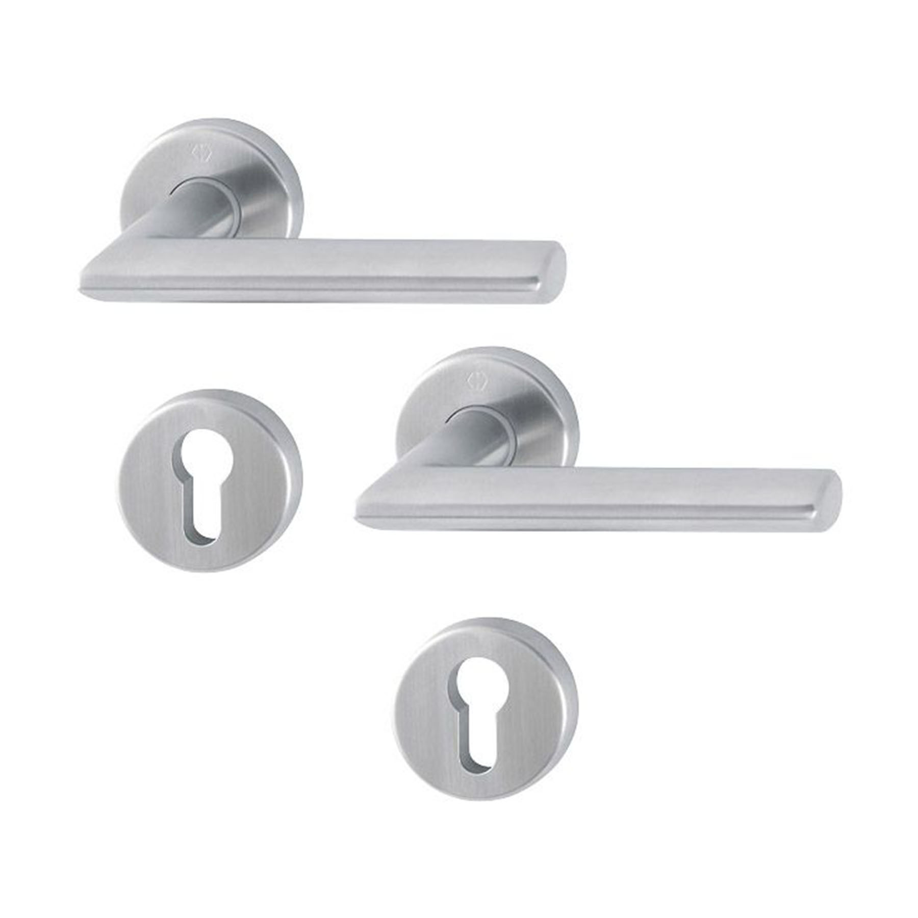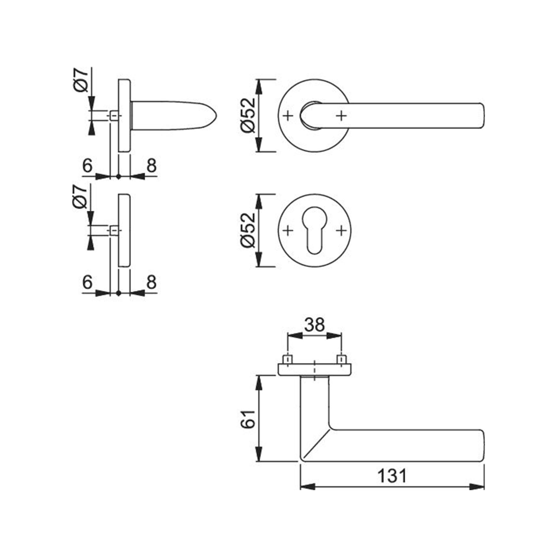 - Zwei Schlüsselrosetten je nach gewählter Lochung (Profilzylinder/Ovalbart/Schlitzkopf)