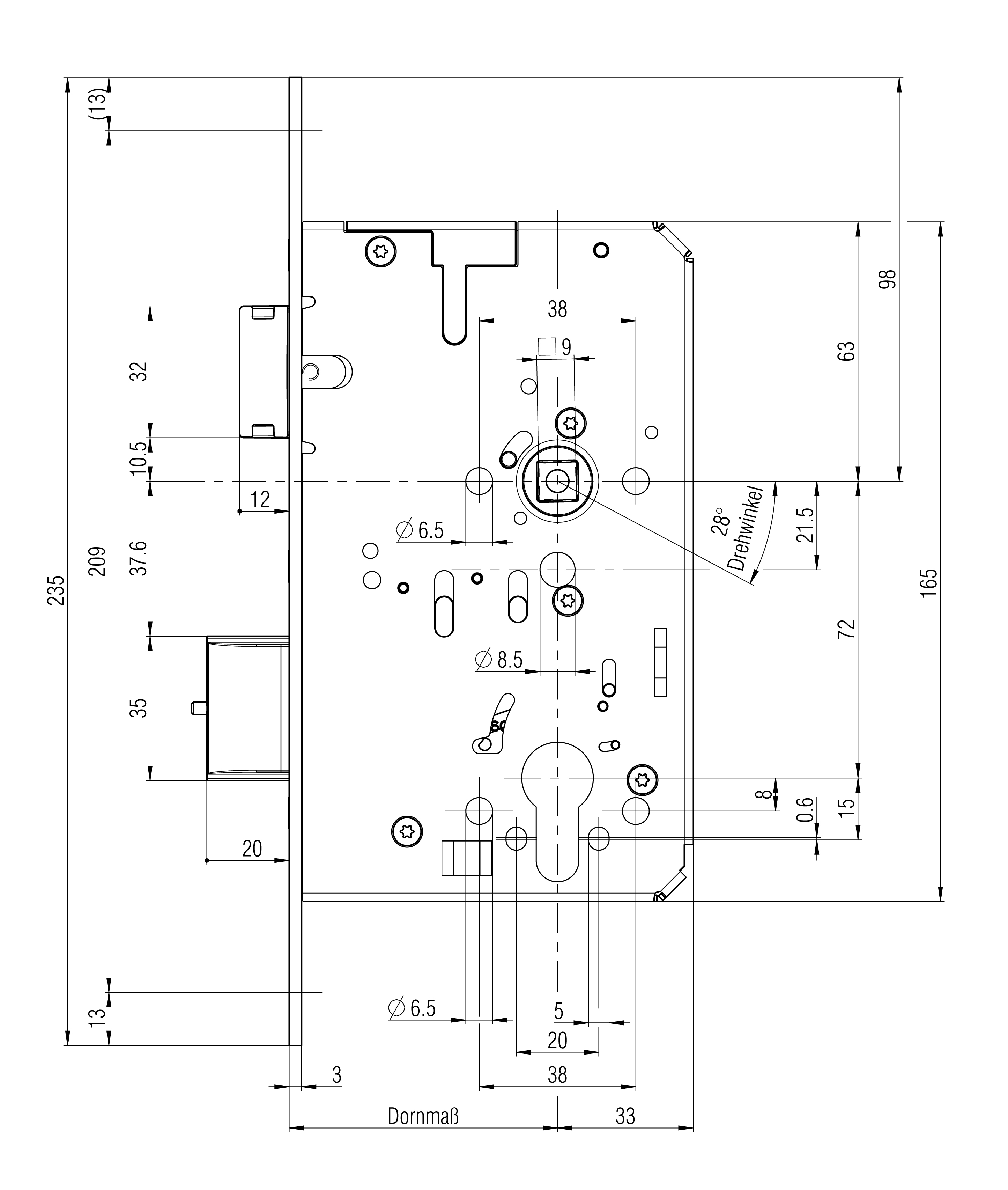 - Dornmaß: 65 mm