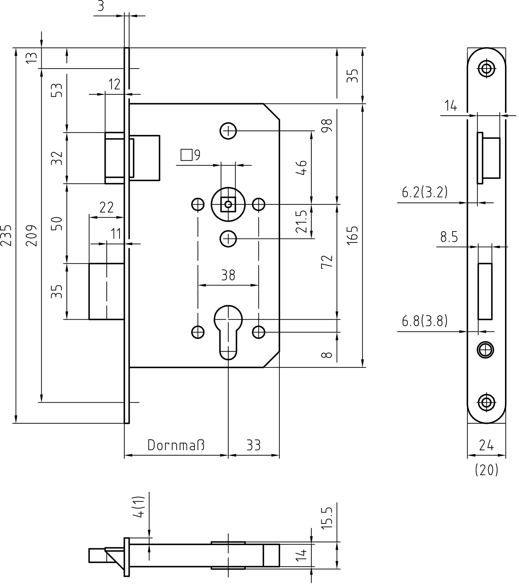 - Entfernung: 72 mm (Abstand zwischen Drücker und Schlüsselloch)
