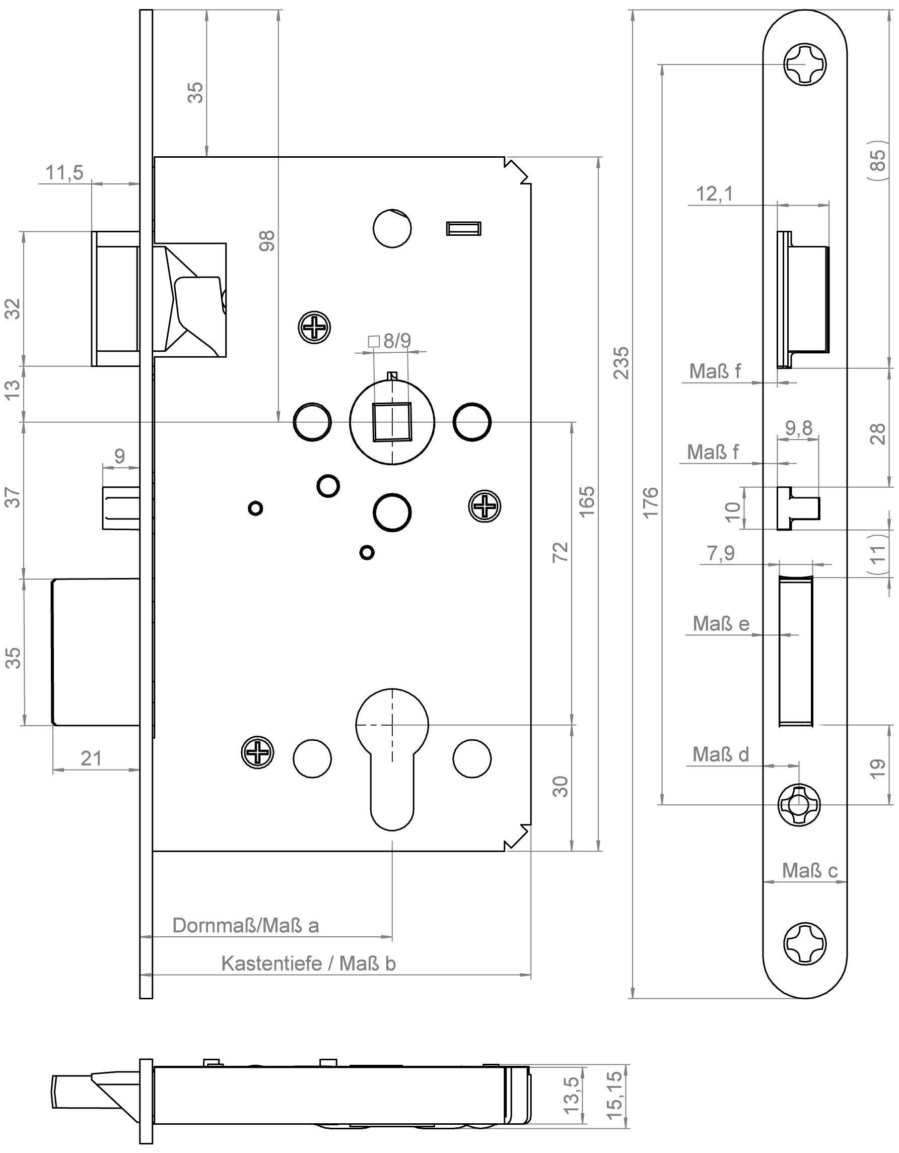 - Entfernung: 72 mm (Abstand zwischen Drücker und Schlüsselloch)