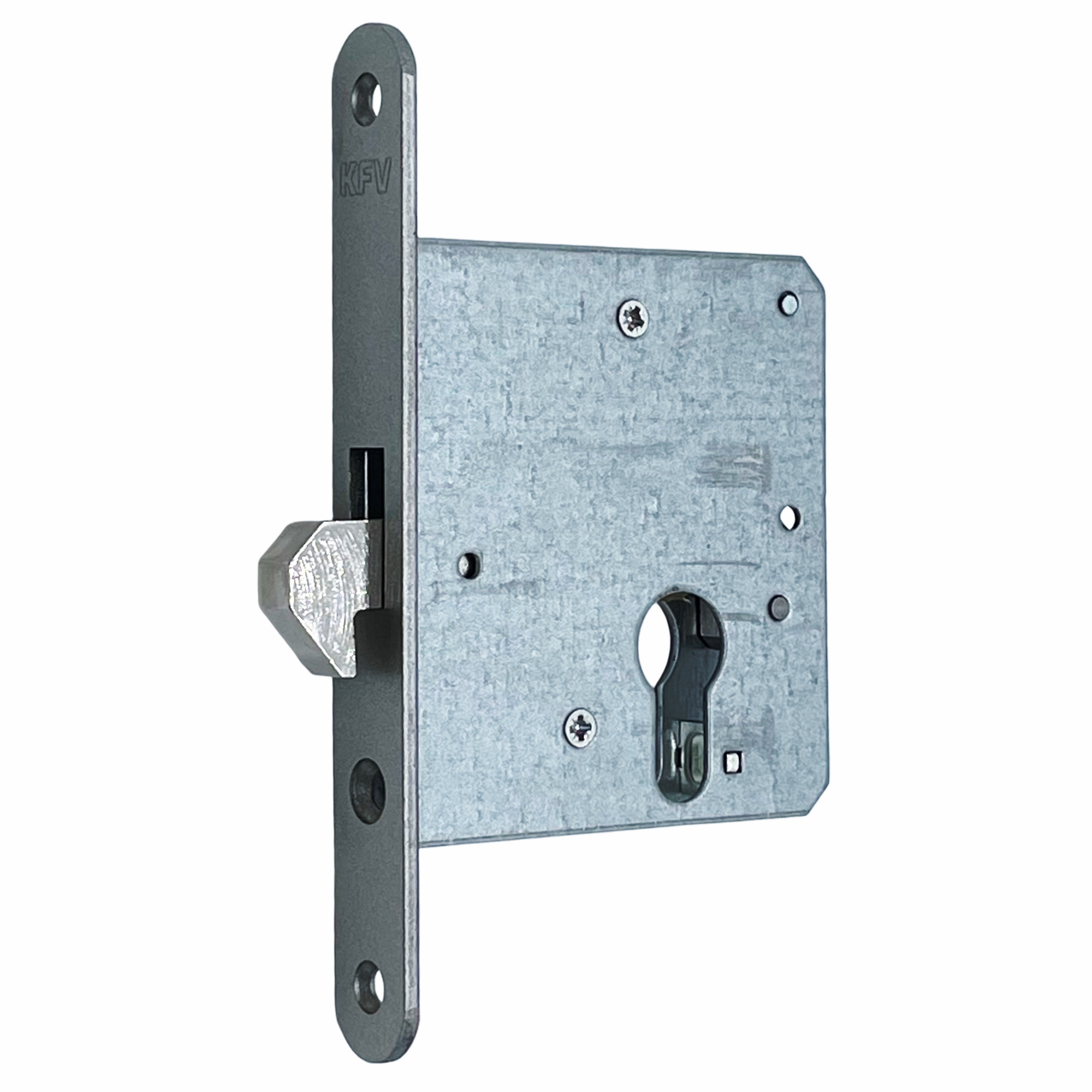 - KFV Einsteck-Schiebetürschloss mit Hakenfalle, Modell 1621 PZ 55/20, altsilber lackiert