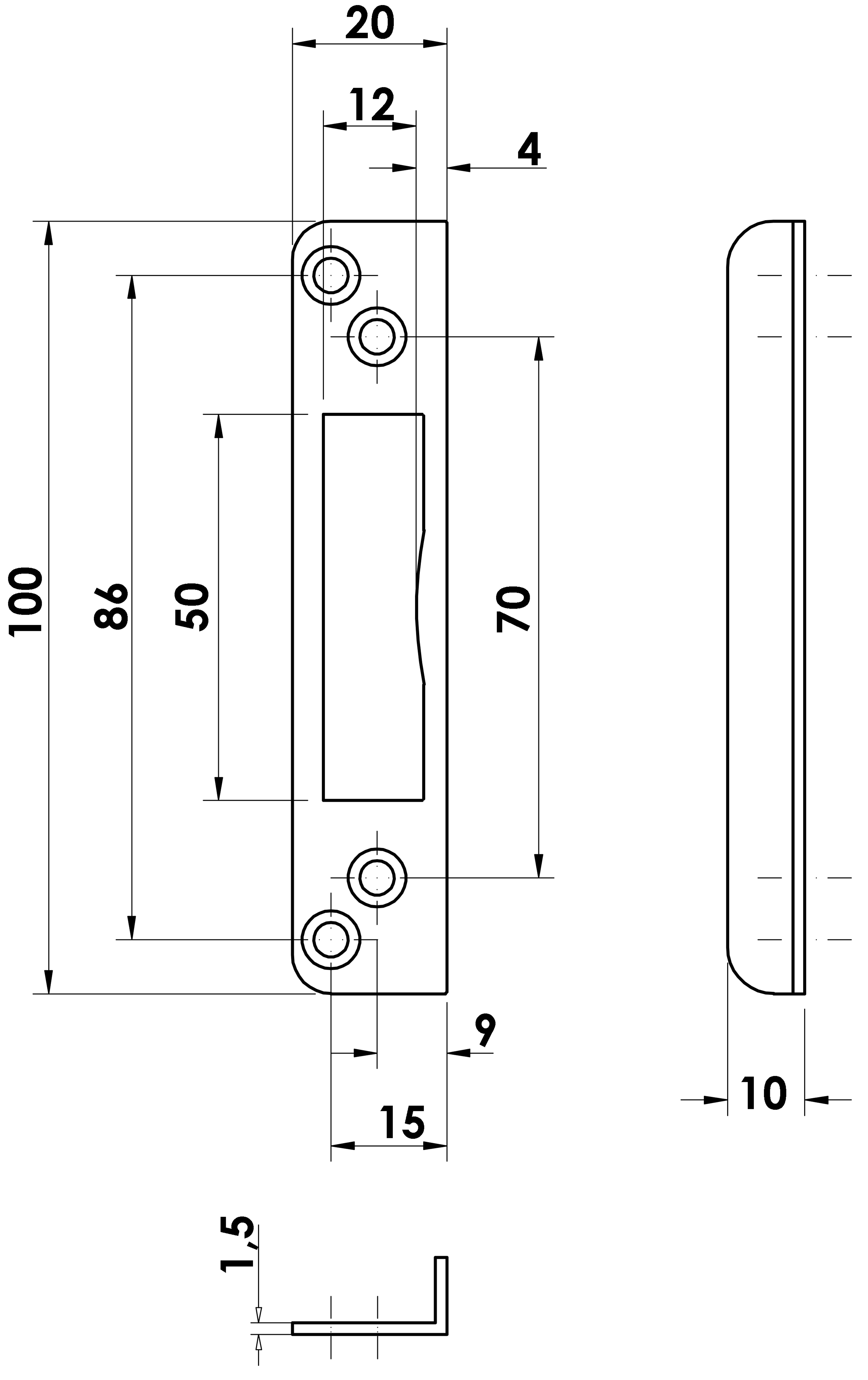 - Form: Flaches Schließblech mit präziser Aussparung für Riegelaufnahme