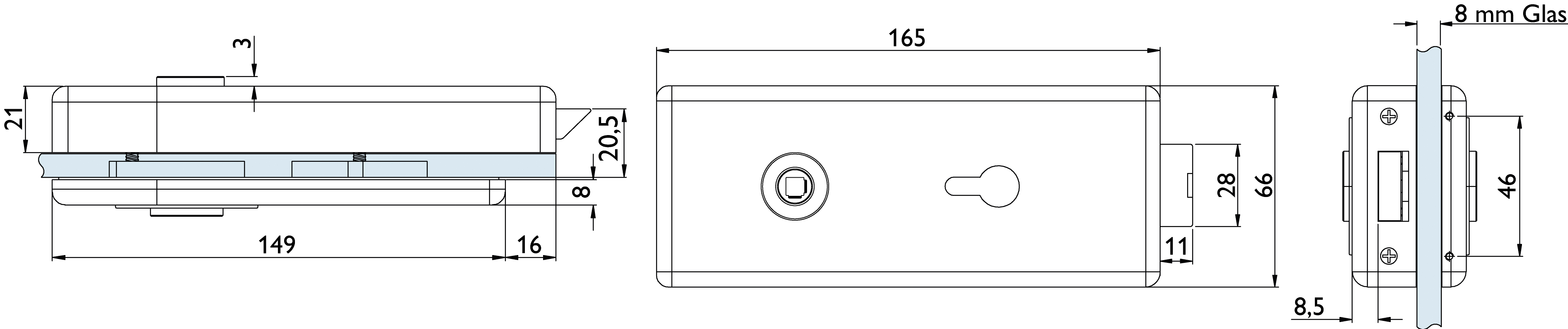 - Bauform: Schlosskasten für Glastüren, Modell Genova