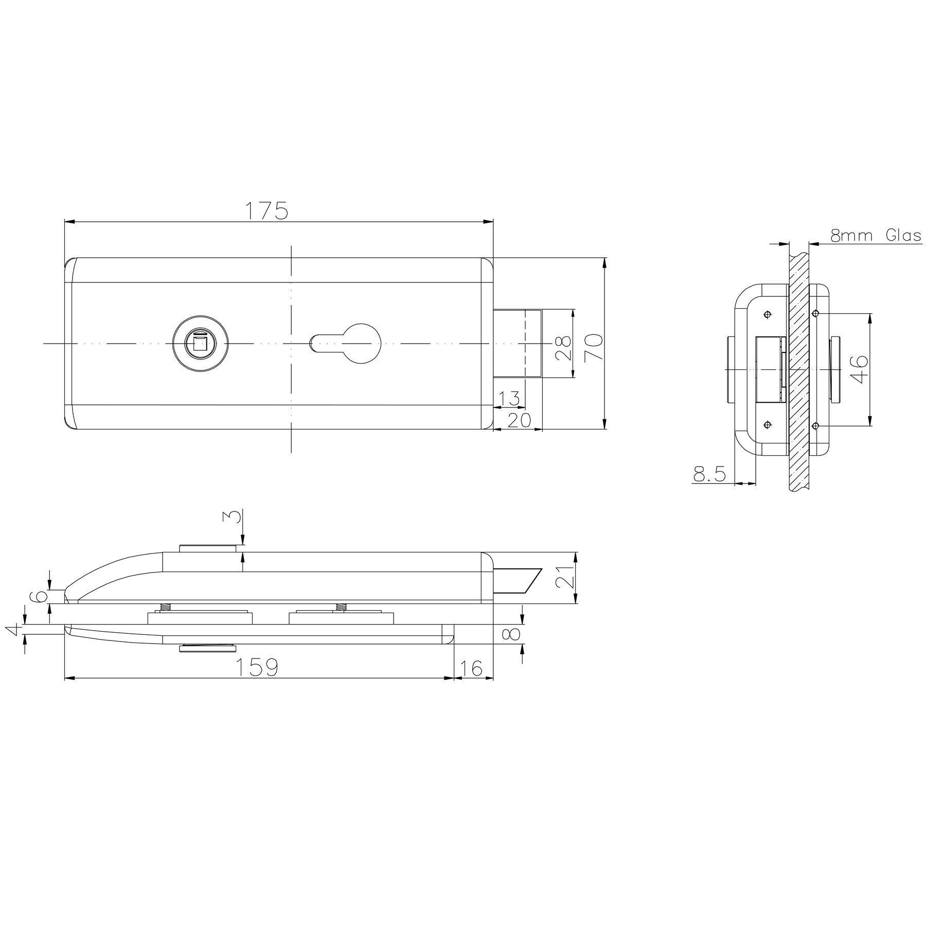 Das Schloss ist speziell für Glastüren ohne Bohrung konzipiert. Bitte prüfen Sie die Glasstärke und Maße vor dem Einbau.
