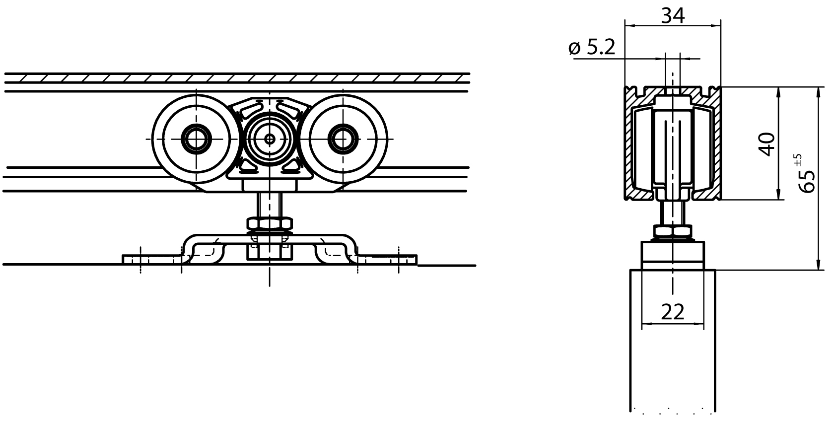 • Laufwagen-Set mit Befestigungsmaterial (ohne Wandbefestigungswinkel)