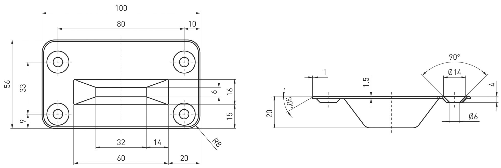 - Bodenschließmulde Typ 1142 aus nichtrostendem Stahl