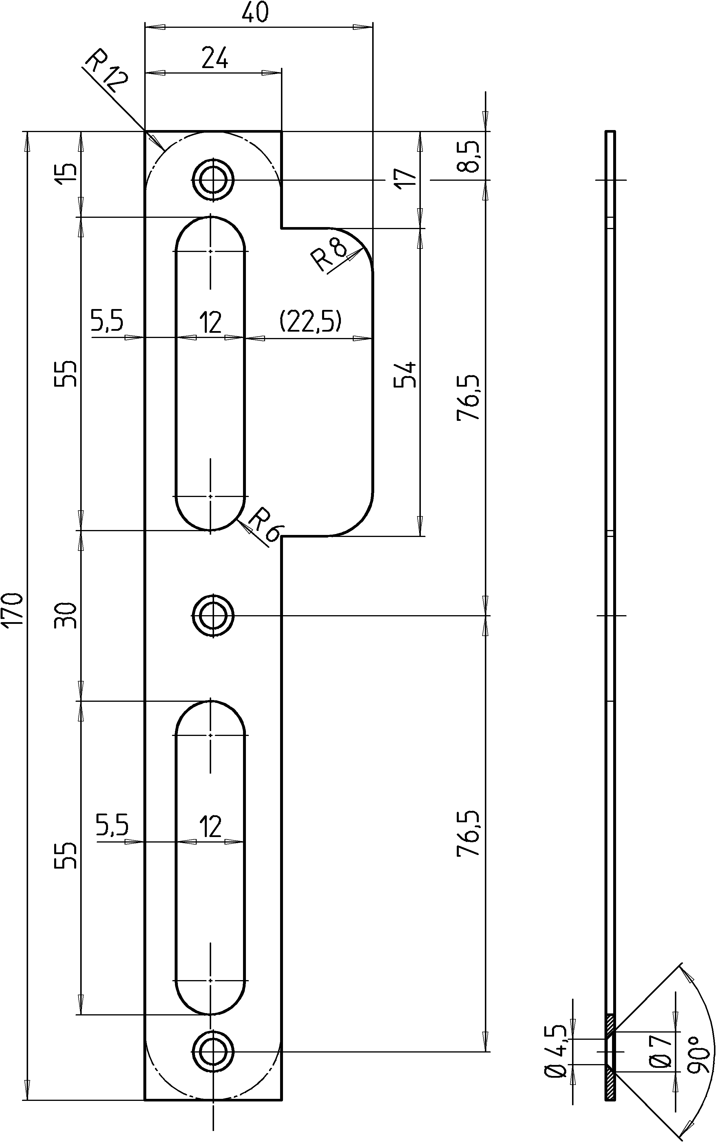 SAG Lappenschließblech 1 LB2560 rund links Nirosta matt