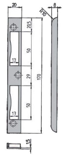 SSF Winkelschließblech für Zimmertüren 4051 00/500, 4051 00/100G