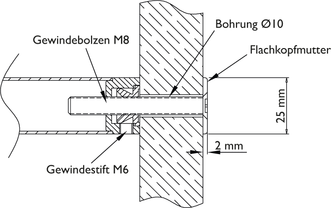 - Befestigungsart: einseitig durchgehend