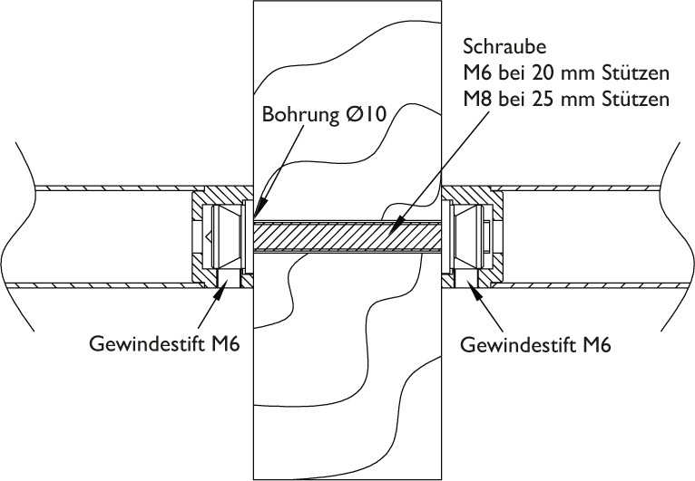 - Paarweise durchgehende Befestigungstechnik