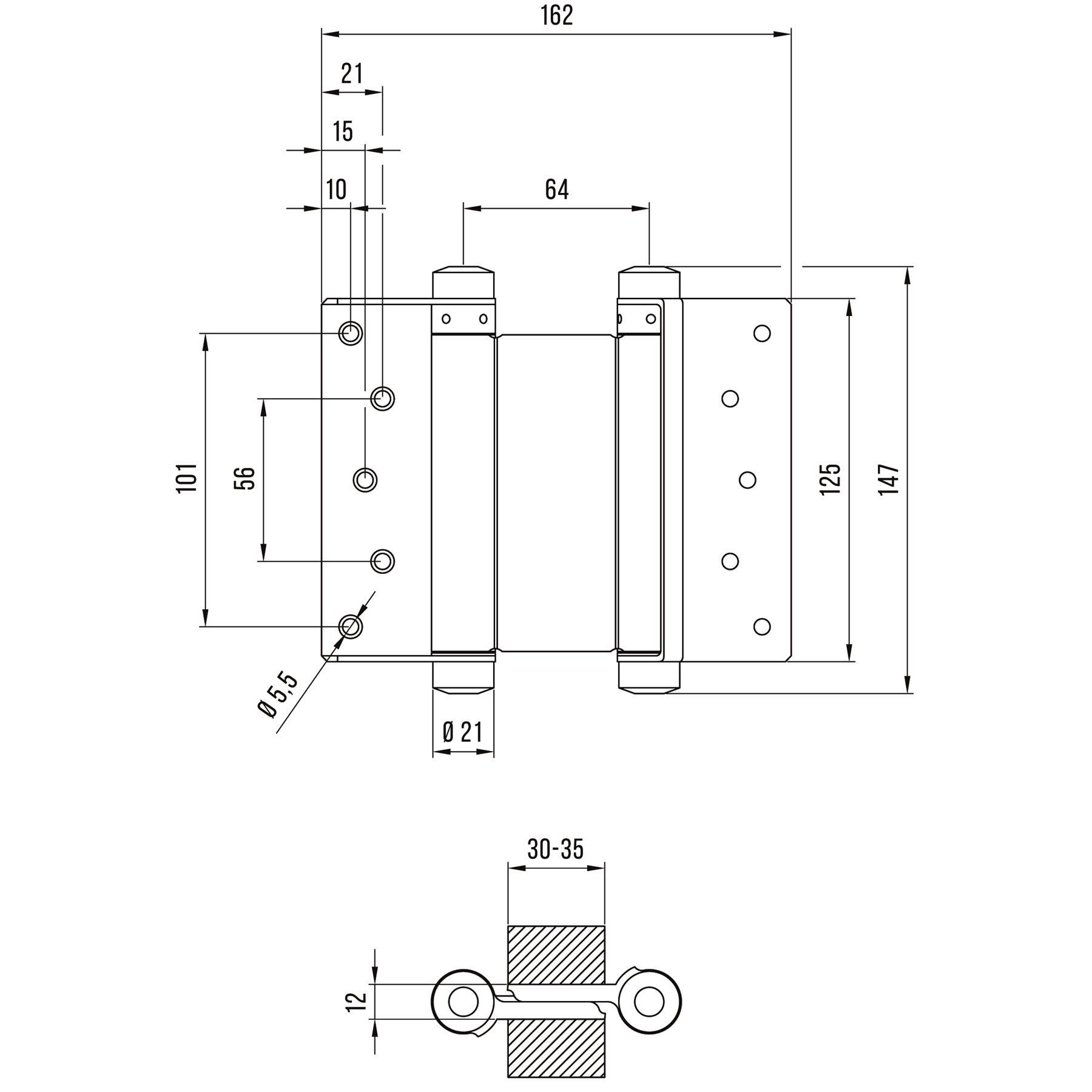 - Pendeltürband Größe 33/125 vernickelt, beidseitig wirkend