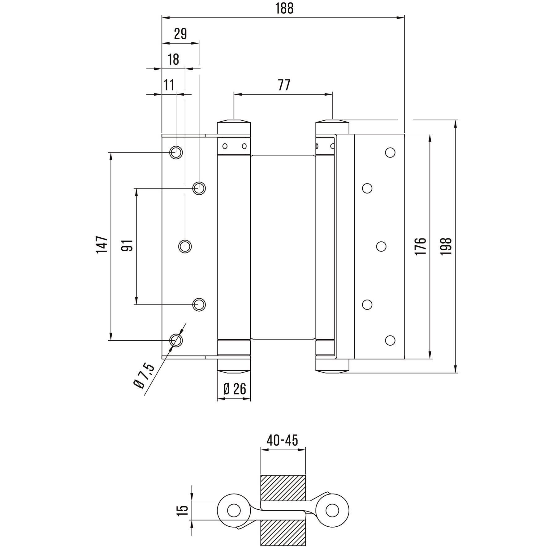 - Beidseitig wirkend – ermöglicht das Öffnen der Tür in beide Richtungen