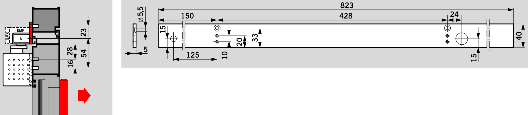 - Ausführung: für Gleitschiene G-EMR von DORMA