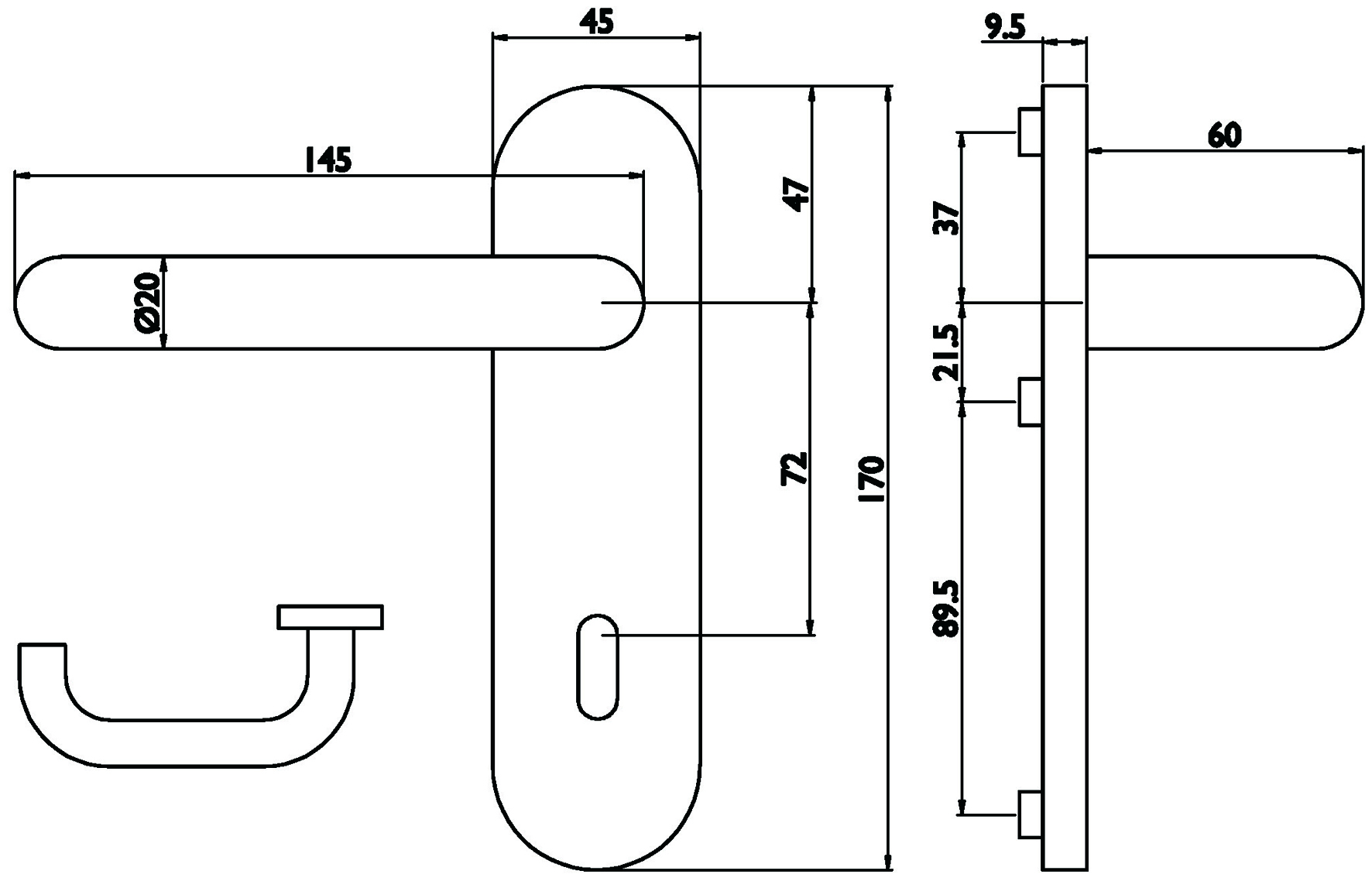 - Türschild-Garnitur bestehend aus Innen- und Außenschild mit Griffen in U-Form