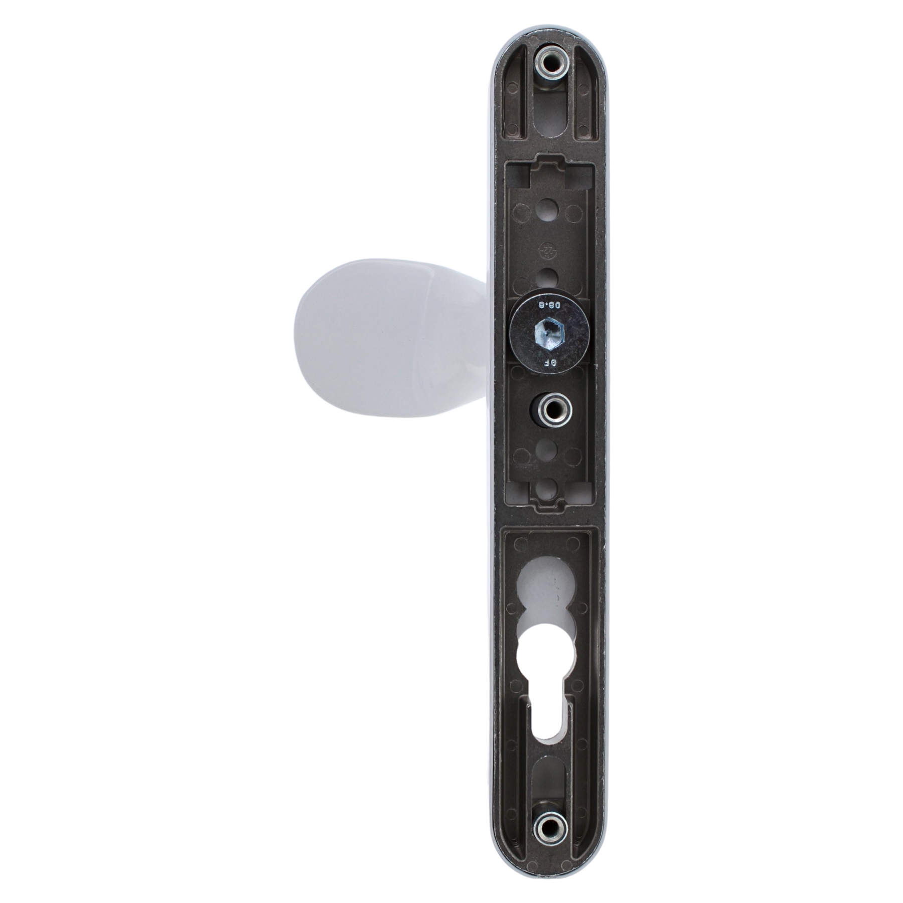 Die ToniTec VARIO Halbgarnitur mit Knauf, PZ 92 mm, ist eine hochwertige Türgarnitur für Profilzylinderschlösser. Sie eignet sich besonders für Türen, bei denen eine flexible Anpassung der Befestigungspunkte erforderlich ist.