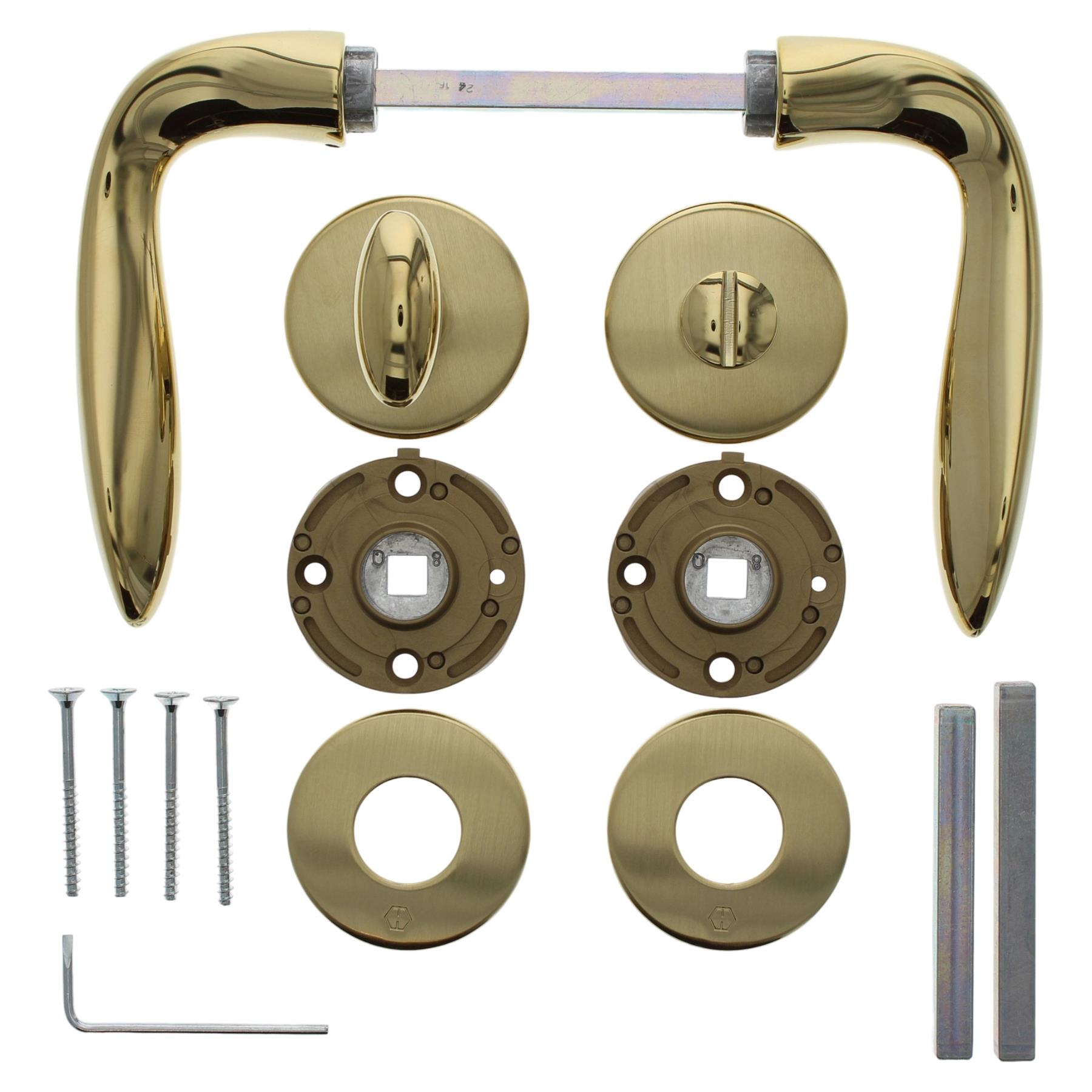 HOPPE Drückergarnitur Genova WC/Bad Rosettengarnitur Buntbart Messing poliert Türgriff-Garnitur Türklinke auf Rundrosette
