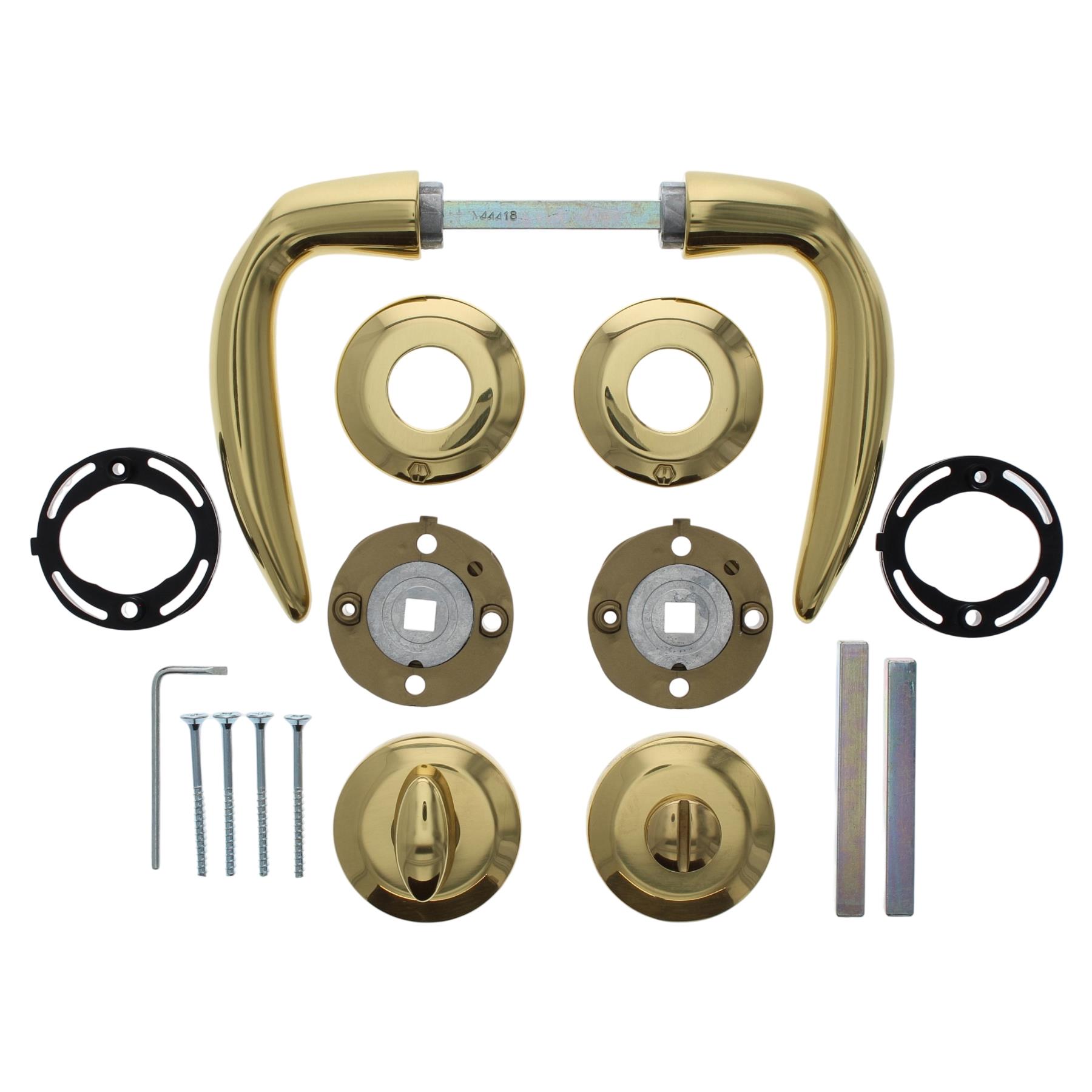 Die Garnitur ist kompatibel mit gängigen Badtürschlössern nach DIN-Norm.