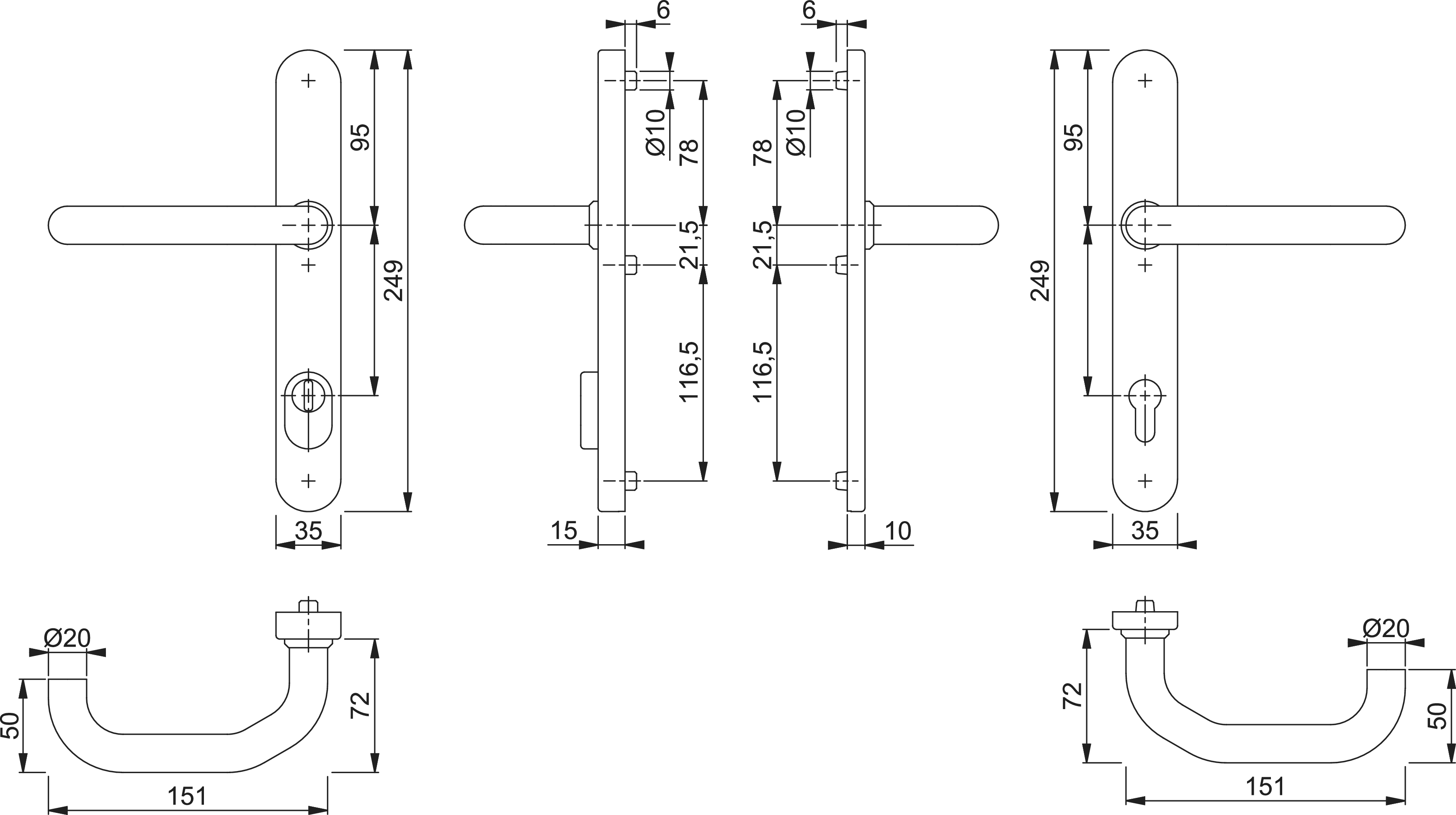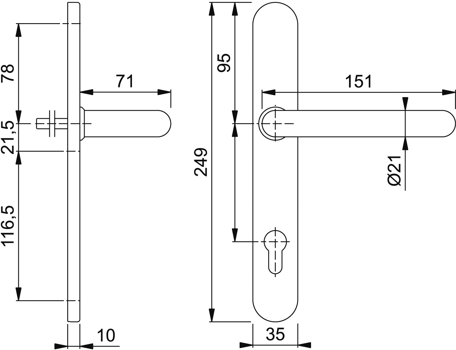 Hoppe Türgriffgarnitur Paris ES1 F69 Edelstahl matt 92 mm PZ