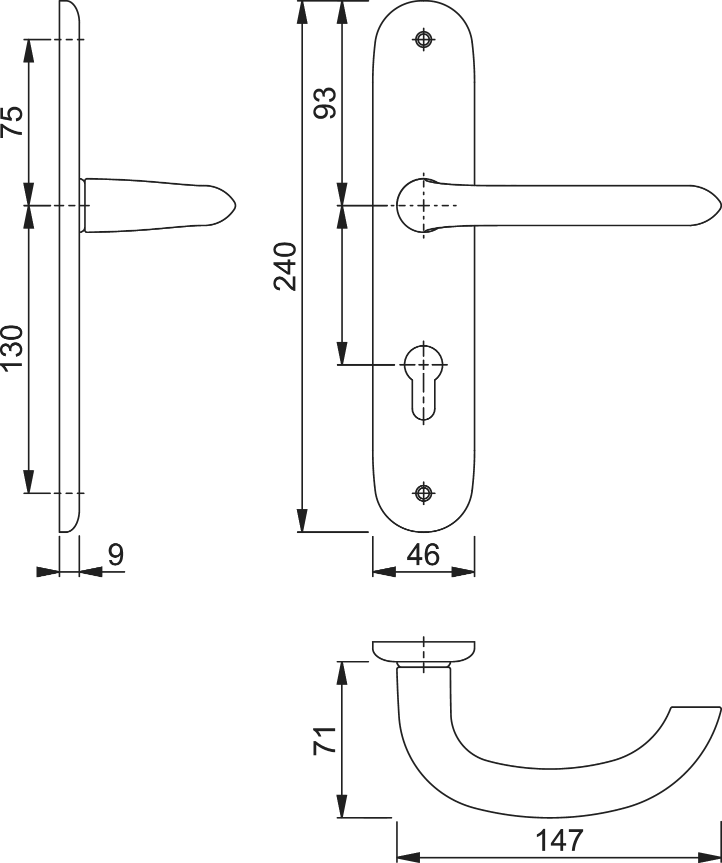 Hoppe Türgriffgarnitur Marseille F1 Aluminium natur 1138/273P PZ 72 mm