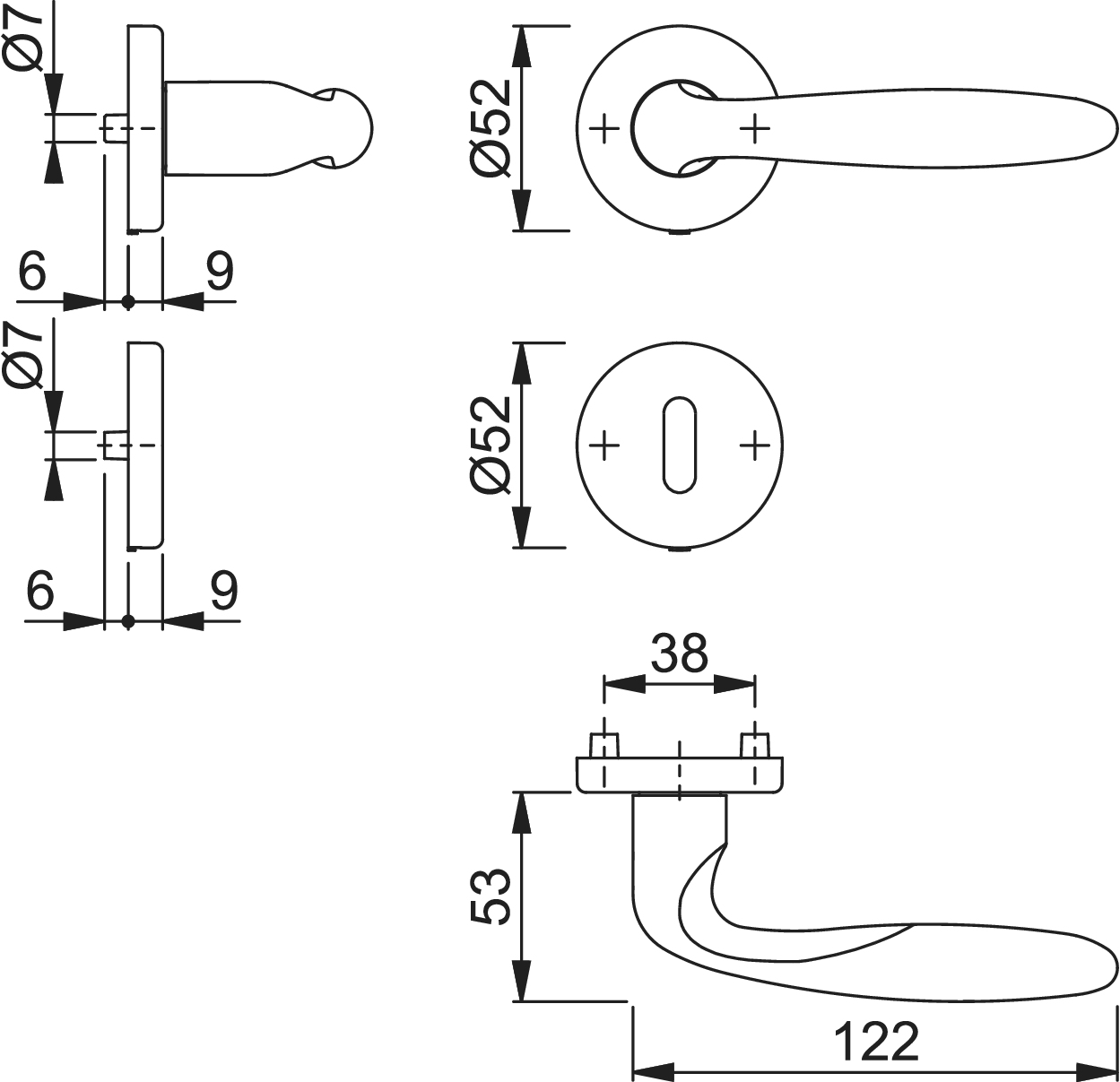 Hoppe Türgriffgarnitur Verona F98 Messing matt verchromt OB