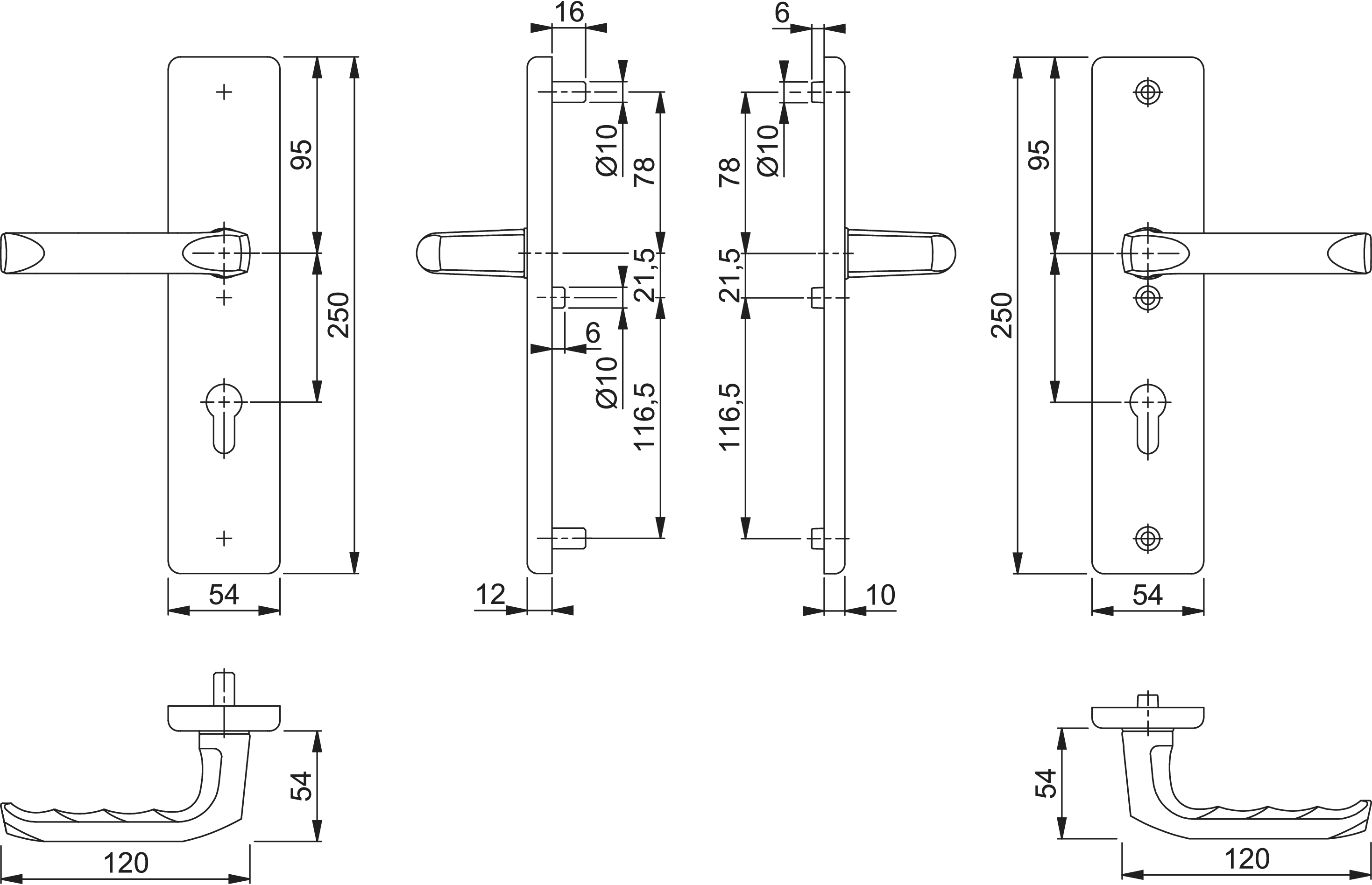 - Profilzylinder-Lochung (PZ), Wechselgarnitur mit Drücker außen und innen