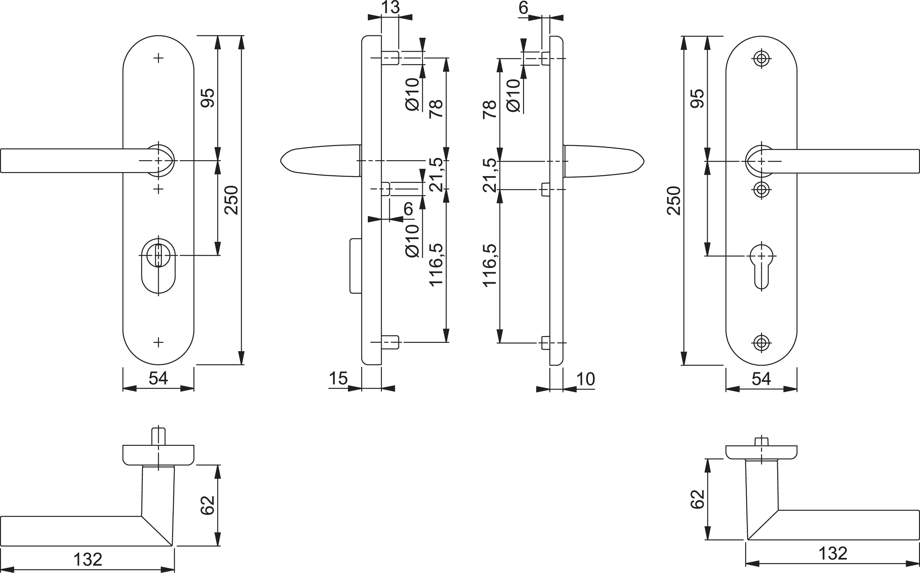 Hoppe Türgriffgarnitur Stockholm ES1 F1 Aluminium natur 1140/3332ZA/3410