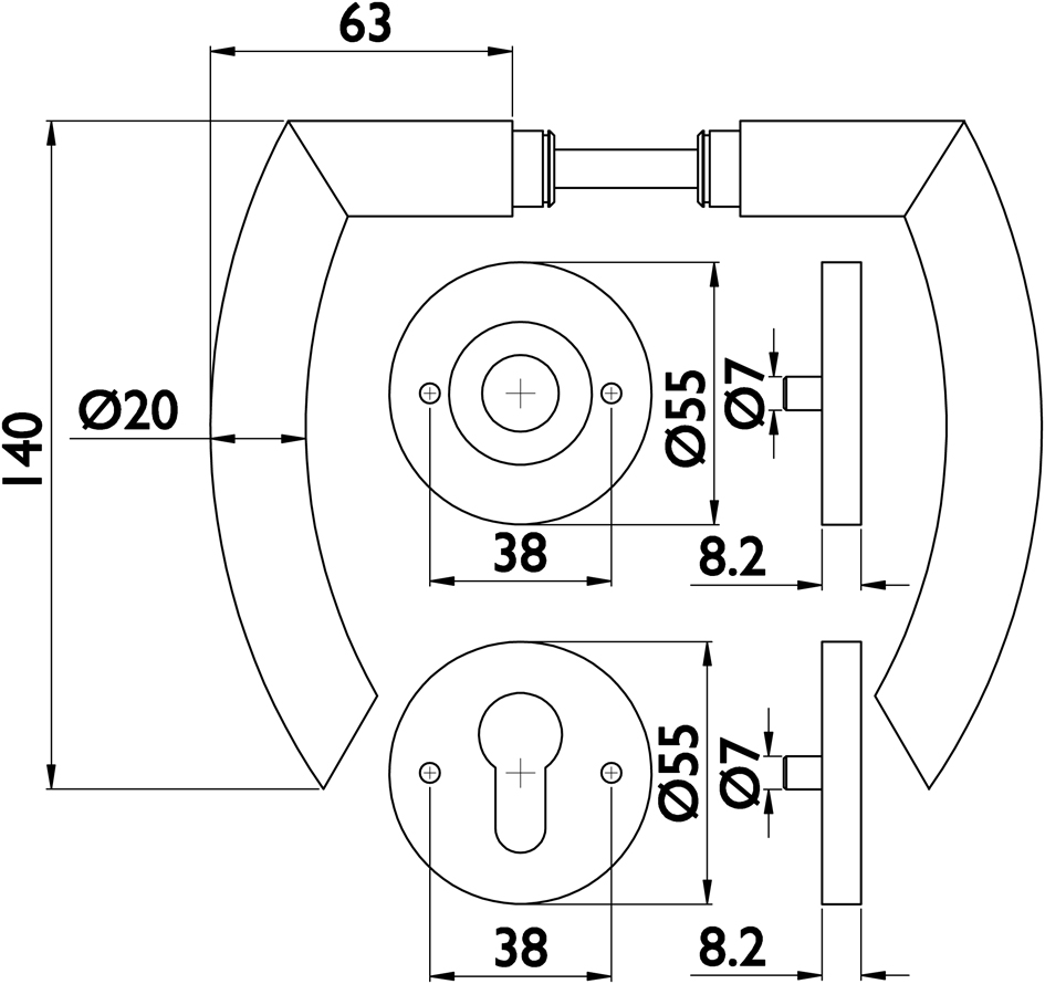 - Schildform: Runde Rosetten für Drücker und Profilzylinder