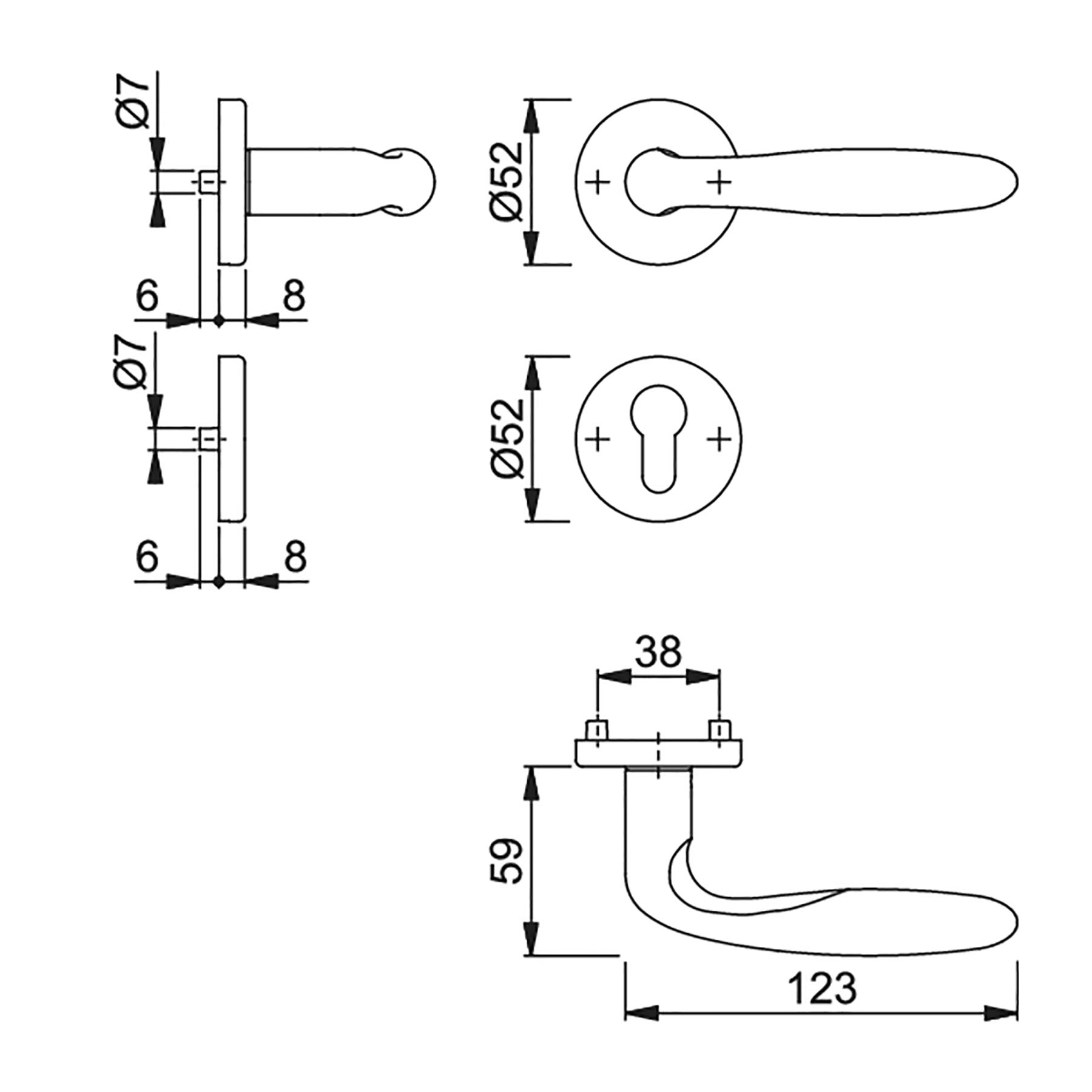 - 1 Schlüssel-Rosettenpaar mit Profilzylinder-Lochung (PZ)