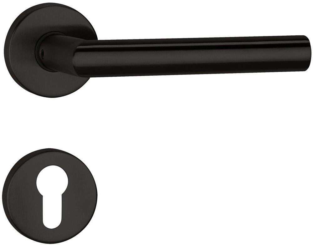 Die Hermat ZT Wechselgarnitur 1802 BASIC 02 PZW in der Ausführung smoke black ist eine hochwertige Türgarnitur für den Einsatz an Zimmertüren. Sie eignet sich zur Kombination mit Profilzylindern und bietet eine moderne Optik sowie zuverlässige Funktionalität.