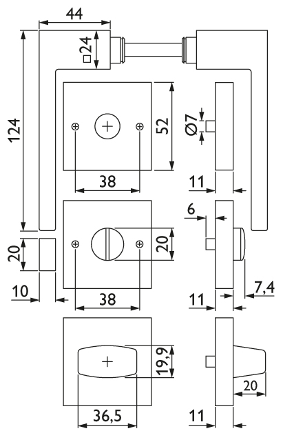 - 1 Langschild-Paar mit Bad/WC-Lochung und Drehknopf/Notöffnung