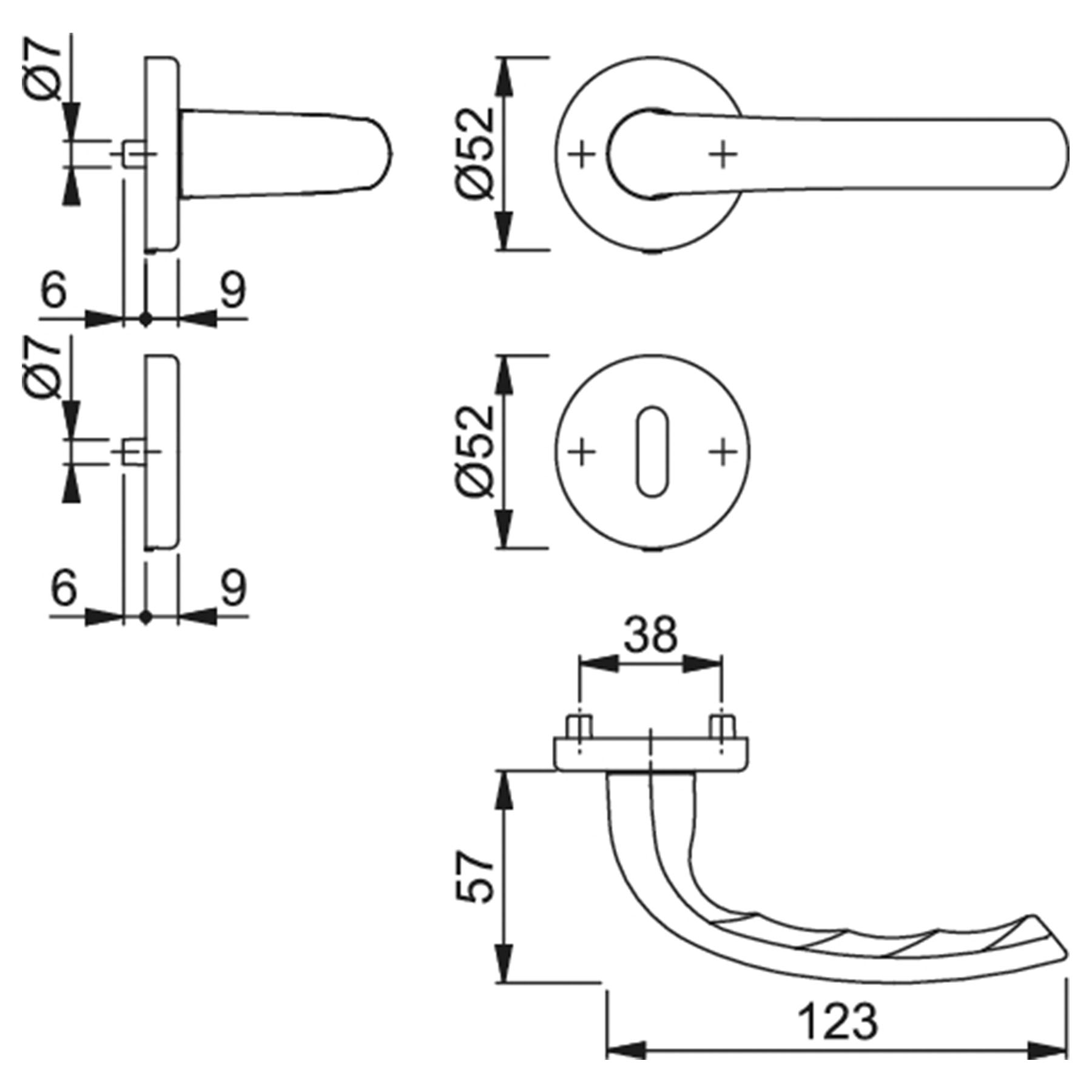 • Zwei Schlüsselrosetten (Ovalbart-Lochung)