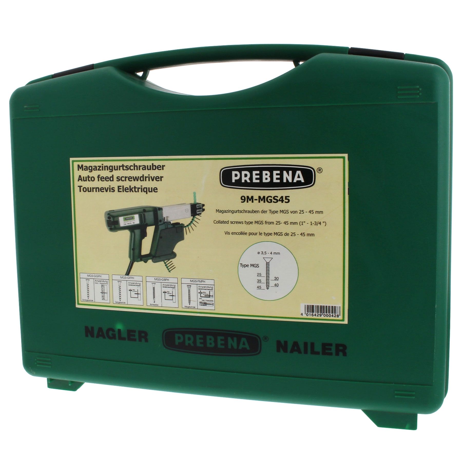 Der Prebena Magazingurtschrauber 9M-MGS45 ist ein leistungsstarkes Elektrowerkzeug zur schnellen und effizienten Verarbeitung von Magazingurtschrauben der Type MGS im Bereich von 25 bis 40 mm. Das Gerät eignet sich für zahlreiche Anwendungen im Trockenbau, Möbelbau sowie bei verschiedenen Montagearbeiten.